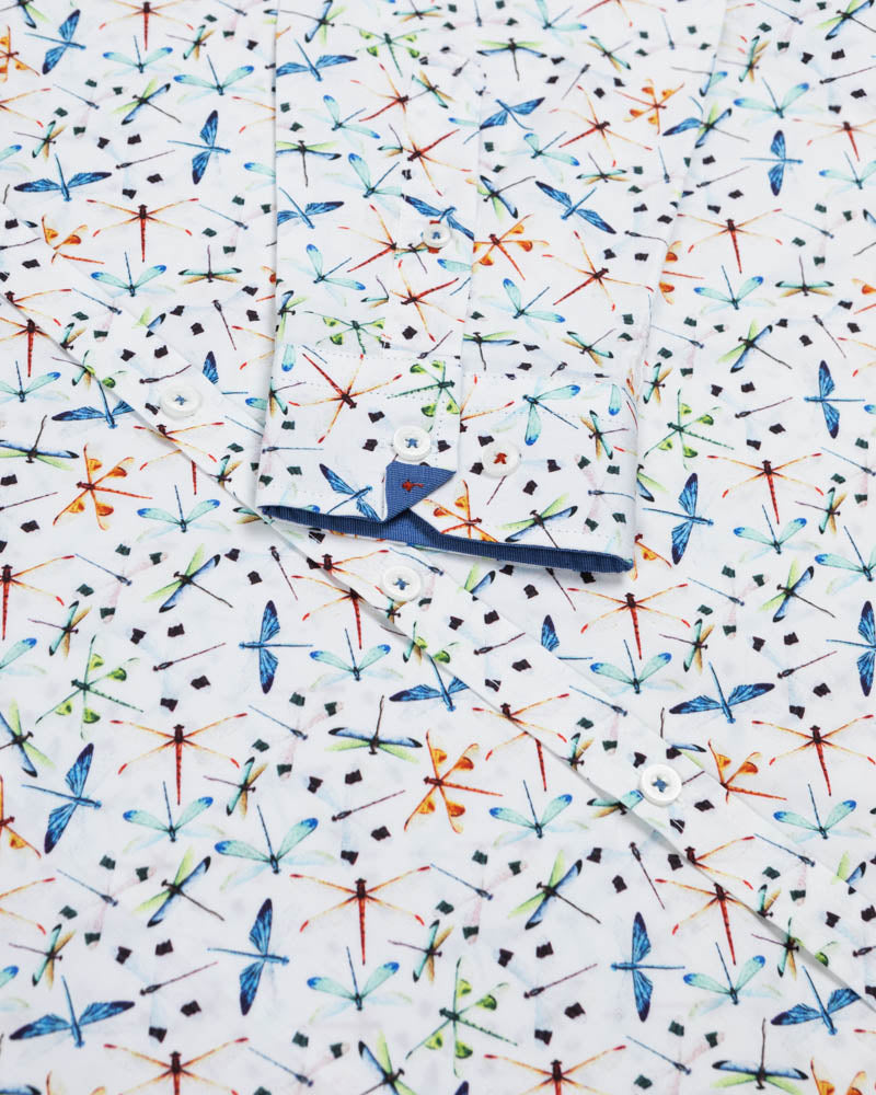 Get back to nature with this limited edition, long-sleeved shirt from Steel & Jelly. Featuring a Cutaway collar and a unique, intricate dragonfly print, this shirt has been crafted using only the finest fabrics & accented by our signature attention to detail. This premium quality 100% cotton shirt is sure to become a new favourite!